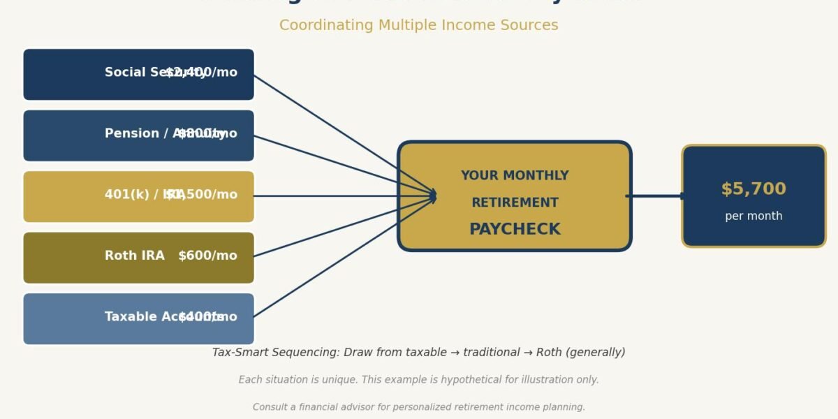 Instead of one employer sending one direct deposit, you may have income arriving from five or six different sources — Social Security, a pension, an IRA, a Roth account, a taxable brokerage account, maybe rental income. They all have different tax treatments, different timing, and different rules. If you do not coordinate them deliberately, you end up either withdrawing too much from the wrong accounts or sitting on money you are afraid to touch.